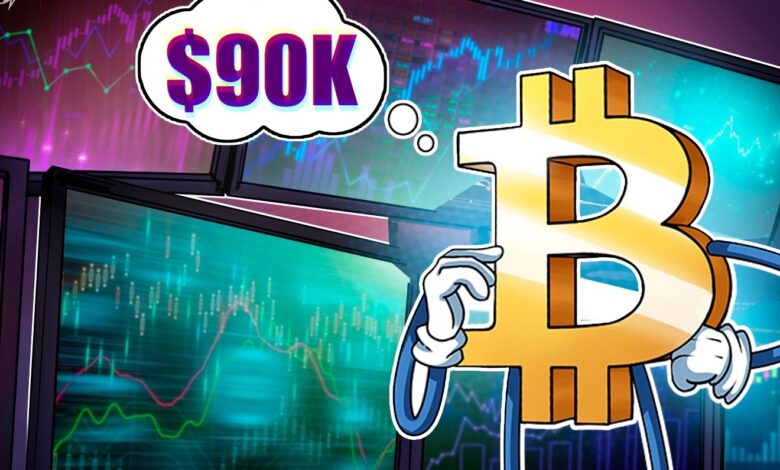 بیت کوین (BTC) در روز چهارشنبه و با آغاز بازار وال استریت، توانست به سطح 90,000 دلار بازگردد و این در حالی بود که معامله‌گران به موقعیت‌های کوتاه‌مدت آسیب‌پذیر توجه داشتند.